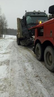 Повышенной сложности эвакуация грузовых автомобилей (постановка на колеса опрокинувшихся автомашин), вытаскивание на дорожное полотно